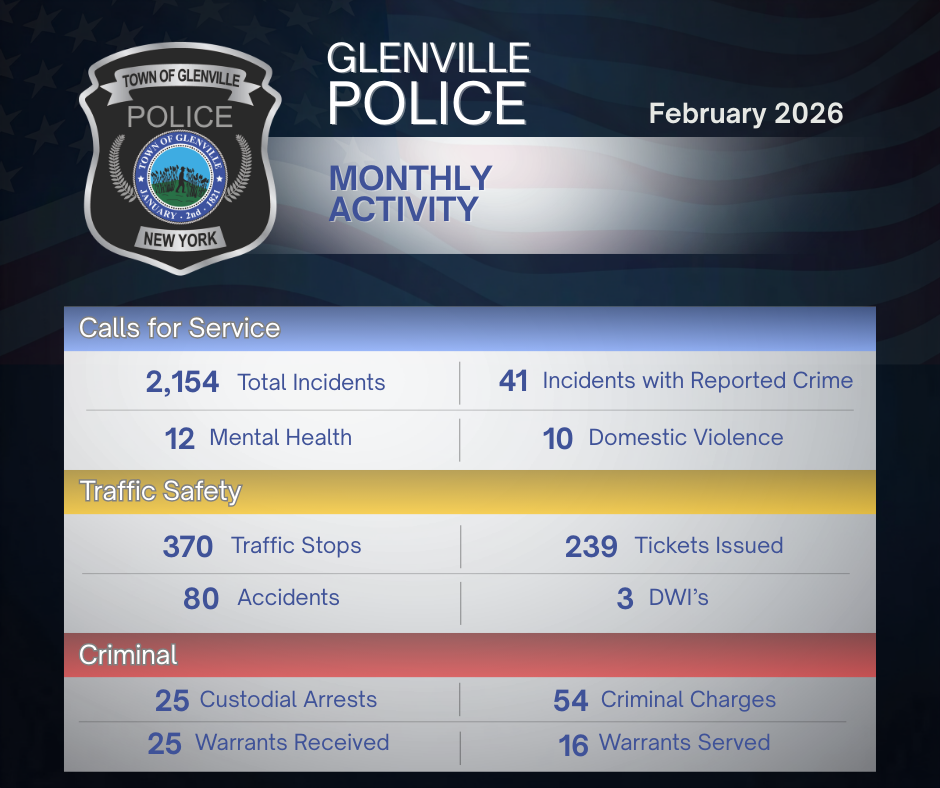 To ensure full accountability and keep our community informed, the Glenville Police Department provides this portal for monthly calls-for-service statistics. These records are updated during the first week of every month, reflecting our commitment to professional law enforcement and public trust.